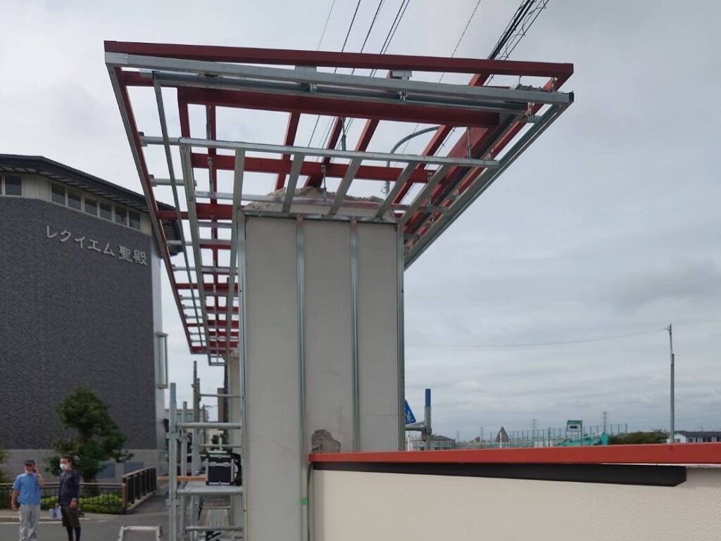 軽鉄で下地組みして下地の材料を貼って スパンドやサイディングで仕上げます。